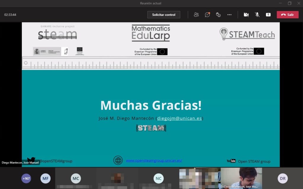 STEAMTeach coordinator (Jose M. Diego) gave a talk entitled ‘Iniciativa STEAMTeach (in English, STEAMTeach Initiative)’ during the High abilities in the inclusive school workshop. The event, organised by the Santander teacher training center, was held virtually on March 3 2021. Attendees were mainly in-service school and high school teachers.