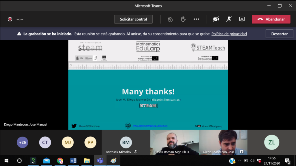 STEMTeach coordinator (Jose M. Diego) gave a talk entitled ‘Implementing STEAM activities with KIKS format: Advantages and Handicaps’ at the STEM education conference. The event was held virtually on November 24 2020, and organized at the University of South Bohemia in Ceske Budejovice (Czech Republic).