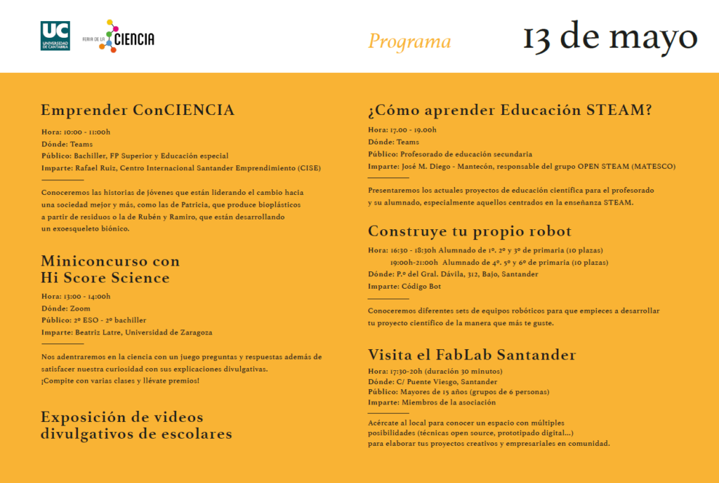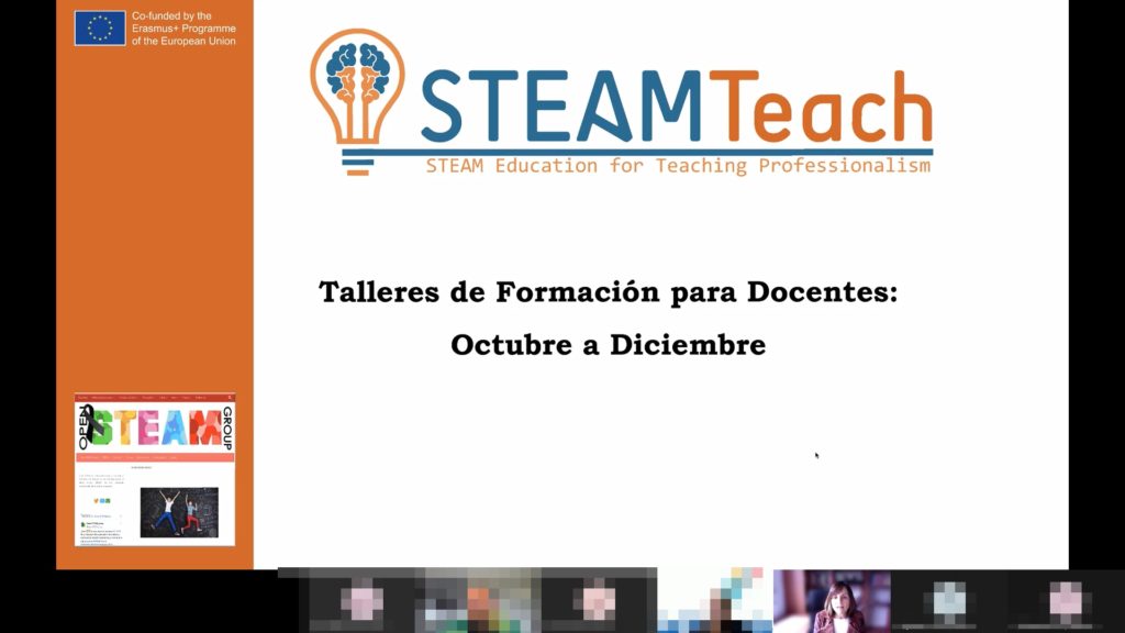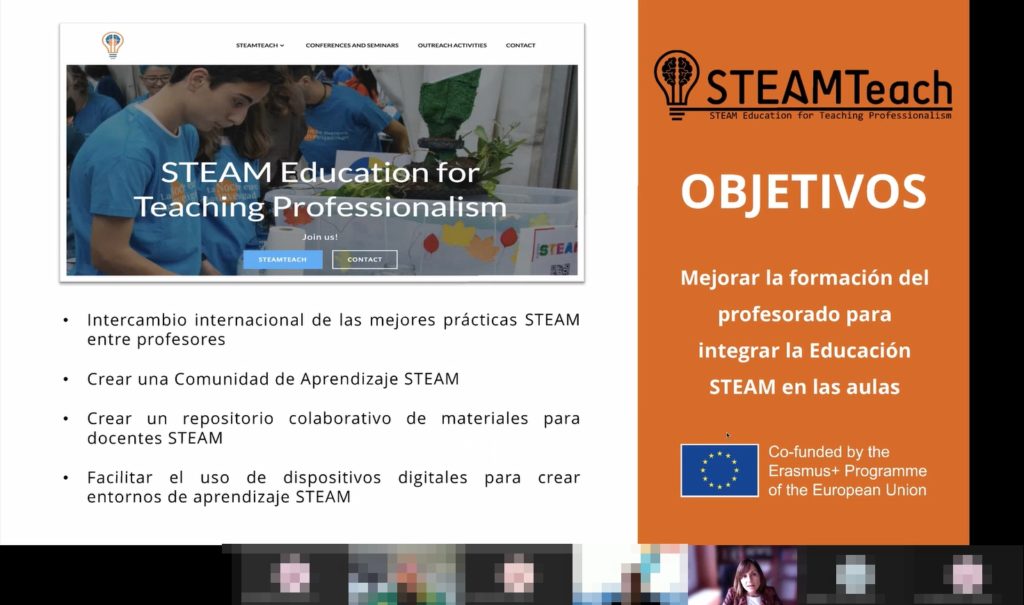 Rosa García Ruiz introduced the STEAMTeach to STEAM high school teachers. In particular, she gave general information about the project and she called for teachers’ participation in the STEAMTeach workshops. The event, entitled ‘¿Cómo aprender educación STEAM? How to learn STEAM education‘, was part of the University of Cantabria Science Fair Festival, organised by its Unidad de Cultura Científica y de la Innovación (UCC+i; Scientific Culture and Innovation Unit). It was held virtually on May 13th 2021.